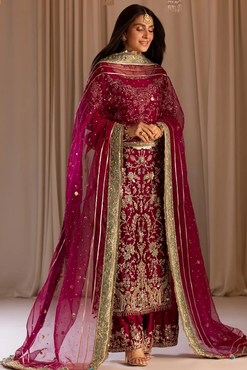 RAW silk with hand work shirt and trouser, dupatta organza with hand work